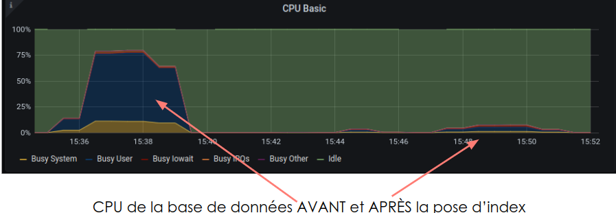 La base de données est souvent un composant critique pour les performances. Les index sont un quickwin qu’il est facile de mettre en place. Le feedback est rapide et les gains apportés peuvent être très importants.
