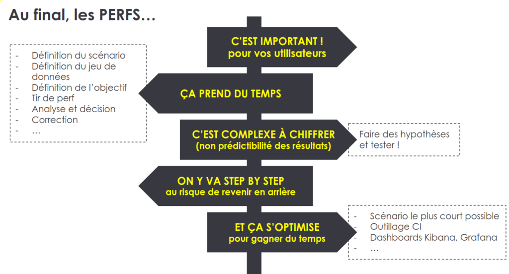 Suite aux nombreux apprentissages des chantiers menés sur les performances, Jennifer a listé les points suivants à retenir lorsqu'on mène un chantier de perf: