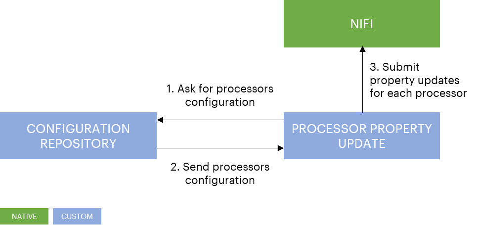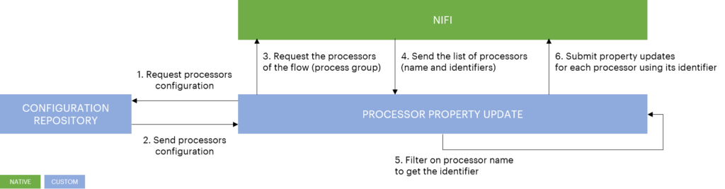 - Request processors configuration for a given NiFi flow known in the configuration repository
