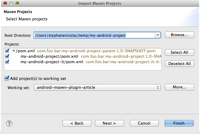 If you reach that point, then everything is setup properly and you now have a working Android Maven project that will also build inside Eclipse.