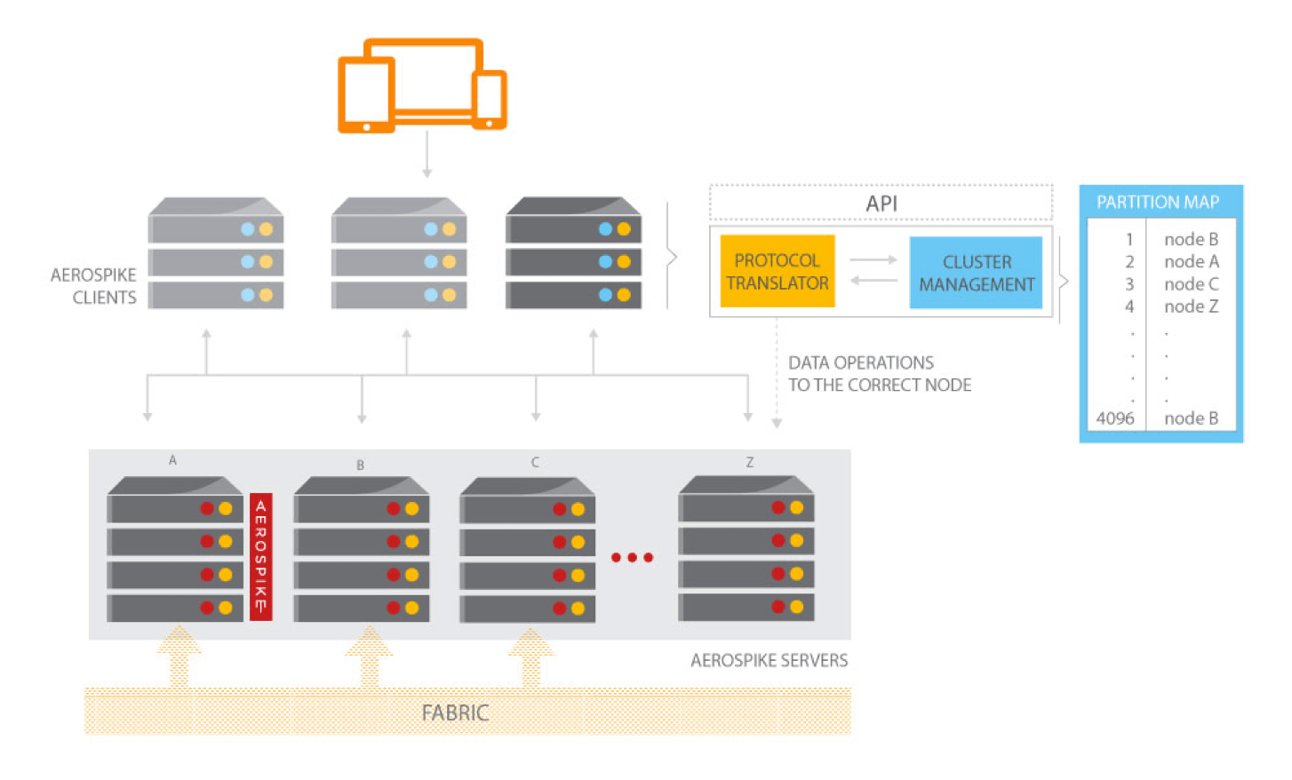 Il est à noter qu’Aerospike est conçu et implémenté pour tirer partie d’un stockage Flash (SSD) en accédant directement aux disk blocks.