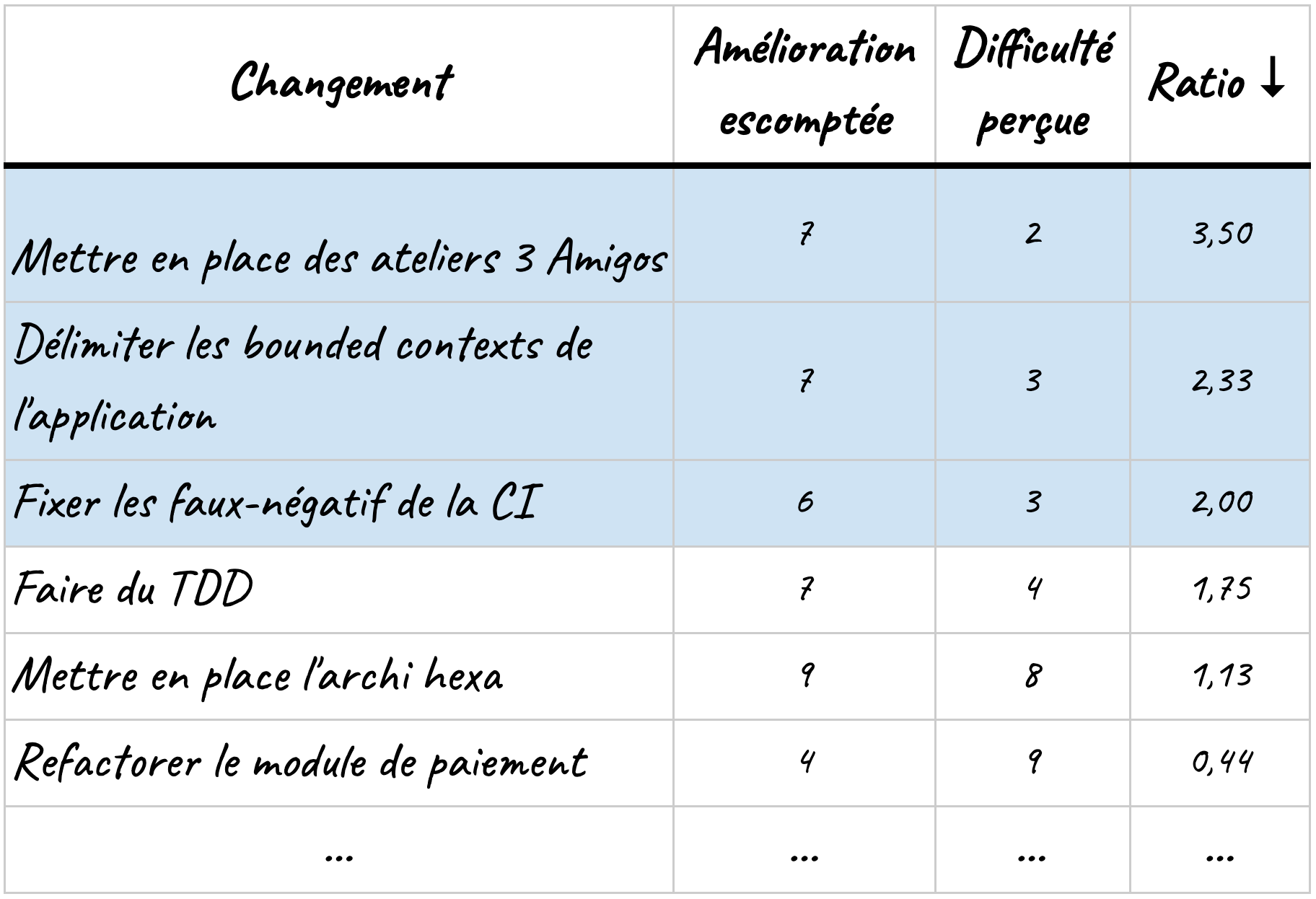 Attention au biais de confirmation : il est possible que vous tendiez naturellement à surévaluer le potentiel et à sous-évaluer l'énergie requise de tel ou tel changement pour influer sur sa priorité. Ce n’est pas très grave, l’important c’est surtout de se poser les bonnes questions en connaissance de cause.