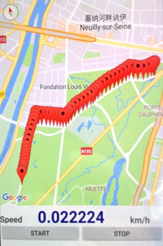Result: Prototype system ran correctly in the car and showed a correct traces tracked by the system and speed displayed correctly in the application like on the photo taken during the test.
