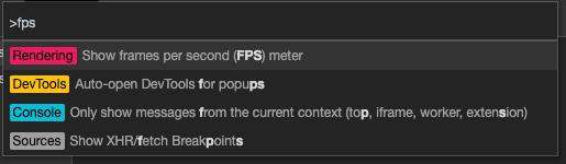 - Tapez “FPS” et cliquez sur “Show frames per second (FPS) meter”