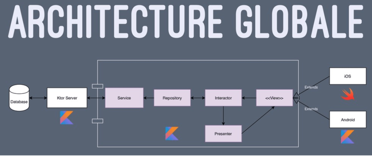 Avec Kotlin on va encore plus loin avec le talk “Kotlin end to end: du client au serveur” présenté par Jordan Tuffery et Julien Datour. Similaire au premier mais qui se différencie en nous parlant du développement côté serveur avec Ktor. L’application démo présentée lors de la conférence utilisait du Kotlin côté serveur et du Kotlin Native pour partager la logique. Seule l’UI était codée nativement donnant une architecture globale assez intéressante.