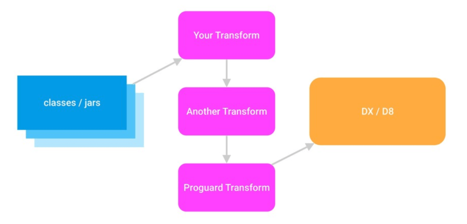 Un peu à la manière de ProGuard, tout se joue après que le Java/Kotlin soit transformé en Class/JAR, mais avant d’être packagé en fichiers DEX.