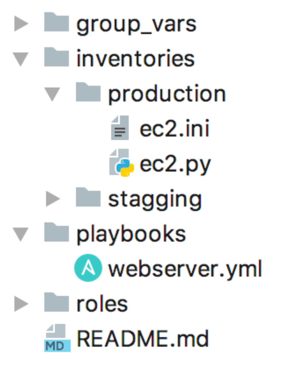 <br># inventory/production/production.ini<br><br>[base:children]<br>webserver<br>appserver<br>bdderver<br><br>[webserver:children]<br>tag_ansible_group_webserver<br><br>[appserver:children]<br>tag_ansible_group_appserver<br><br>[bdderver:children]<br>tag_ansible_group_bddserver<br><br><br><br><br><br>