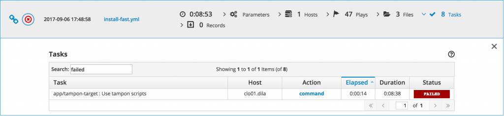 Finally, the web interface is quite cool since it allows you to filter information by hostname, keyword, or status. This is particularly useful when you’re trying to see the changed, or failed tasks of a playbook, or when you’re trying to see all the tasks linked to a certain role or middleware.