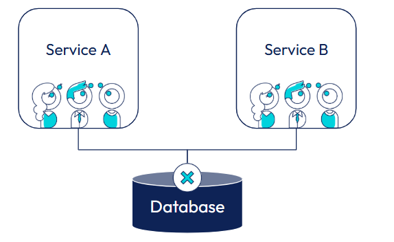 Dans ce contexte, lorsqu’un changement est introduit par l’équipe du service A, celui-ci peut indirectement modifier ces tables partagées et provoquer un dysfonctionnement, voire un crash, du service B. L’inverse est tout aussi vrai : selon le service qui initie la première mise à jour, c’est l’autre qui subit les effets de bord.