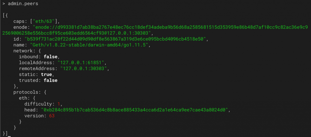 Nous devons les rattacher en récupérant leurs informations de connexion, aussi appelées “enode” : enode://<NODE_ID>@<IP>:<LISTENING_PORT>?discport=<UDP_DISCOVERY_PORT>)