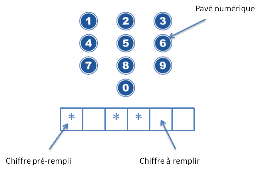 L'utilisateur doit entrer un code dans les espaces restant correspondant à son mot de passe. Les positions définies sont générées aléatoirement.