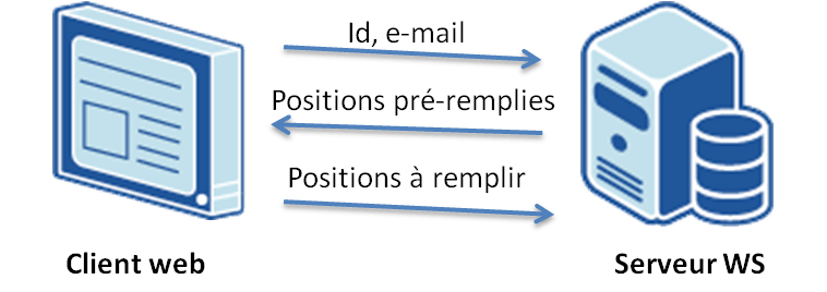On a un serveur web communiquant avec une interface web distante. L'identification à l'interface par l'utilisateur se fait en deux phases :