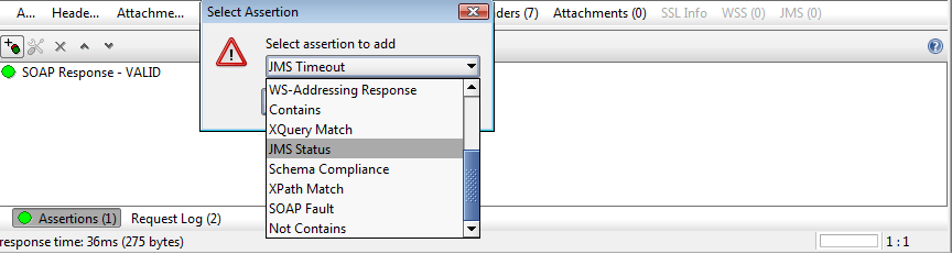 On veut maintenant s'assurer que pour de faux identifiants, le noeud “Result” doit être à faux. SoapUI propose plusieurs types d'assertions sur les réponses : tester la valeur d'un noeud selon XPath, valider le schéma selon le WSDL...