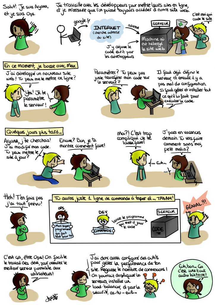 Ayant longtemps fait partie de ceux qui cherchaient à comprendre ce que faisait concrètement un Ops, j'ai décidé d'essayer de répondre à cette question via une petite BD.