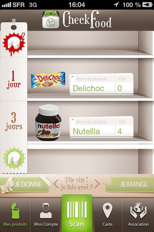 Fini le gaspillage ! Avec l’application “Check Food”, nous vous notifions quand un aliment va être périmé. Vous avez alors 2 choix : Le consommer ou le donner. En consommant un produit avant sa Date Limite de Consommation, c’est jusqu’à 1 500€ d’économie pour vous par an. Soit potentiellement 22 millions d’euros du pouvoir d’achat qui ne sera pas jeté à la poubelle ! En faisant don des produits consommables que vous n’aurez pas le temps de manger, c’est jusqu’à 264 000 tonnes de produits distribués. Soit potentiellement 520 millions de repas offerts à ceux qui en ont besoin !