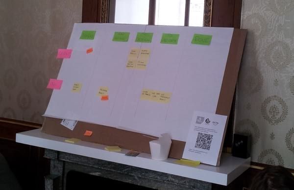 Pour s’organiser rien ne vaut un taskboard physique sur lequel nous avons séparé les tâches coté mobile et celles coté backend (Base de données, webservices,...). Naturellement, nous avons ajouté la colonne “to validate”, imposant une revue de code croisée avec un autre développeur. Cette colonne pourrait sembler superflue dans une épreuve de 48h mais elle nous a permis :