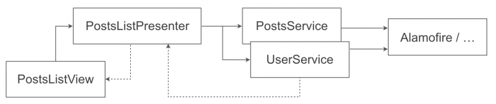 - A Presenter PostsListPresenter which contains the logic behind the view.