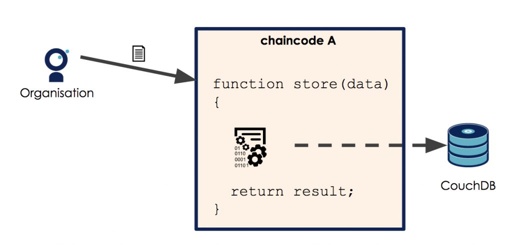 Fabric est une plateforme d’exécution : elle permet l’exécution de smart-contract, appelé chaincode. Ces chaincodes peuvent être écrits en Golang, Node.js ou encore en Java, et interagissent avec une base de données, qui est soit de type clé/valeur (LevelDB), soit orientée document (CouchDB), au choix.