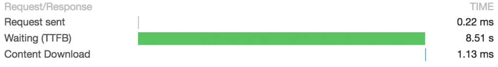 Figure 2: TTFB (Time to first byte) mesuré par chrome lors d’un appel au tableau de bord