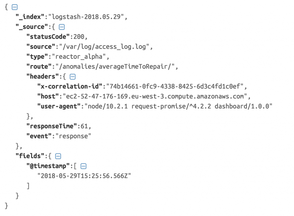 Figure 4: Une entrée de journal d'accès au format JSON généré par le réacteur alpha.