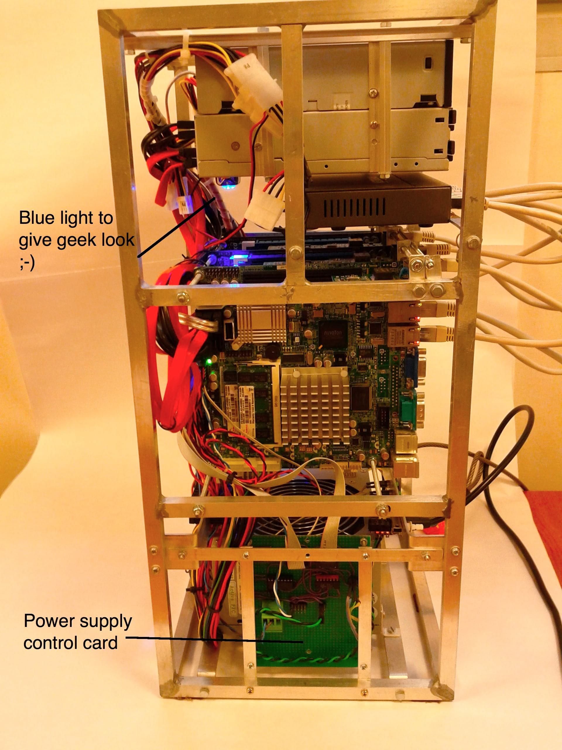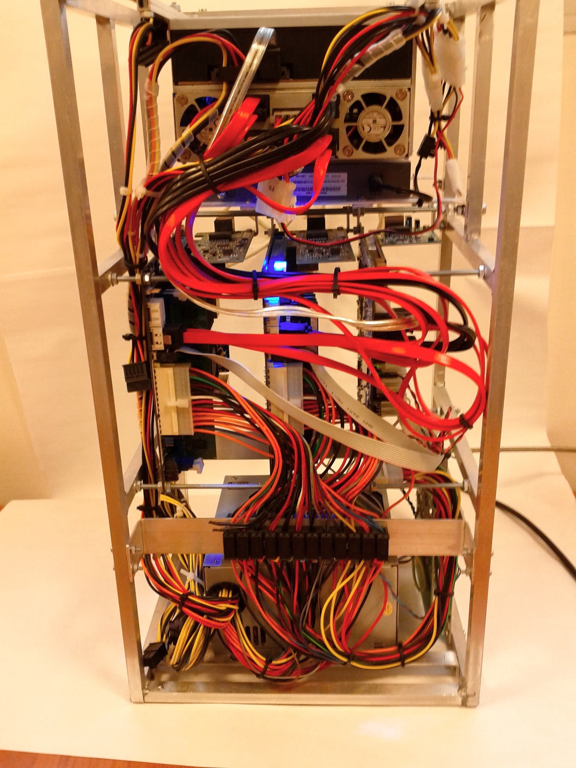 This is the most custom made device of the Cloud machine, as well as the mechanical structure. In fact, PC power supplies are not designed to drive more than one motherboard.