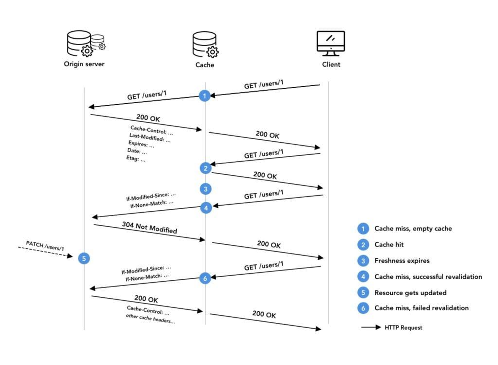 Let us describe succinctly each one by introducing two important terms relating to the HTTP caching terminology: cache hits and cache misses.