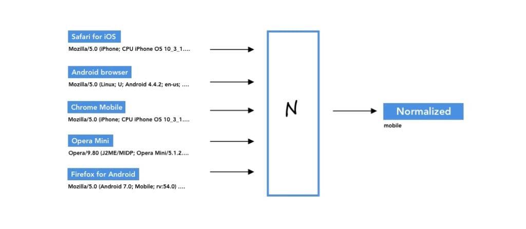 The process by which all these representations are regrouped is called normalization and is often done at the cache. Many caches offer configuration utilities or their own languages to deal with these situations. Sometimes, the functions are even already written, or snippets can easily be found on the Internet. The following pictures illustrates the process for the infamous User-Agent header.
