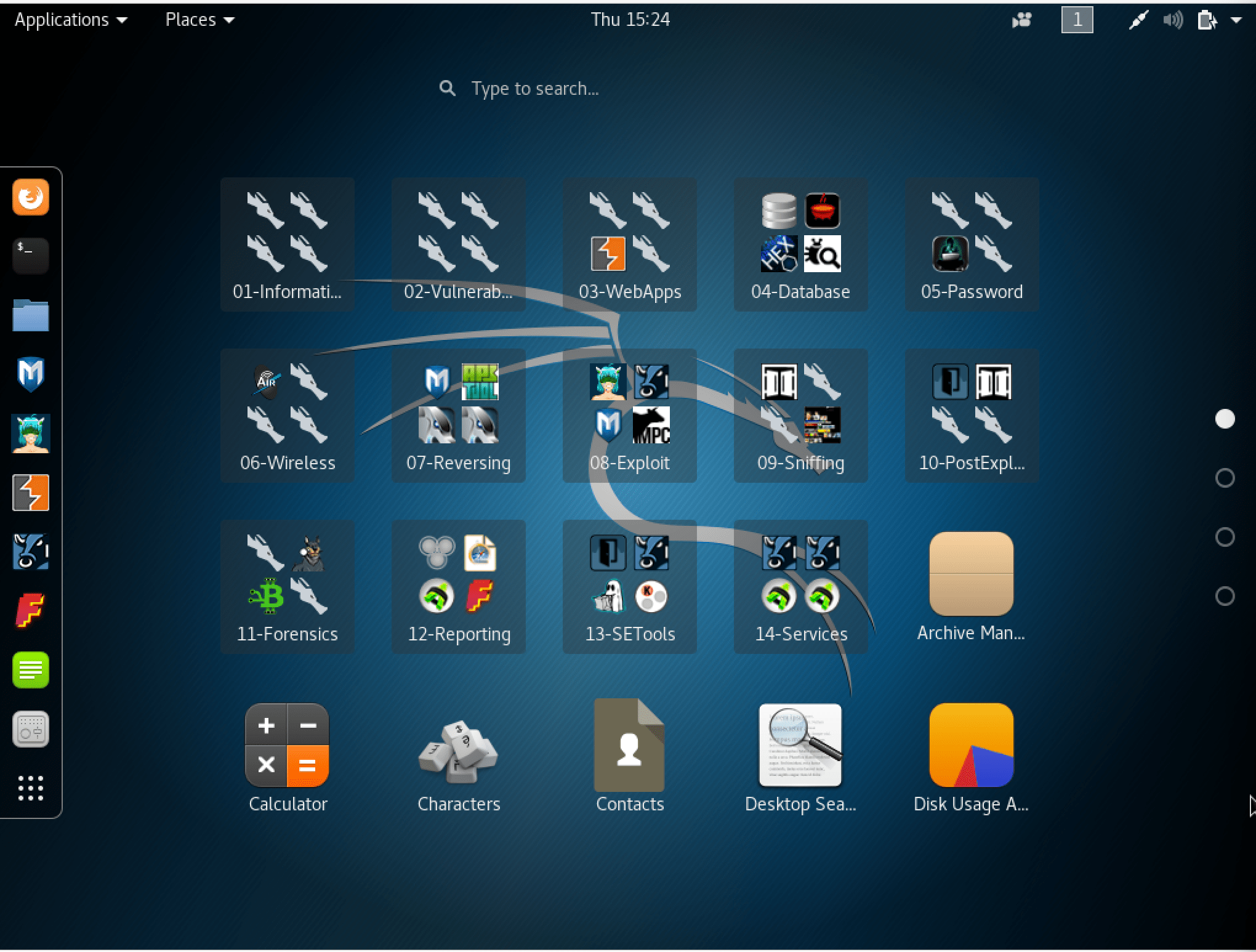 Kali-Linux, et ses nombreux logiciels préinstallés.