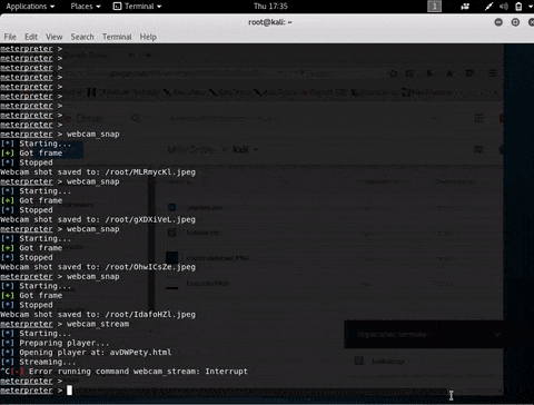 Le prompt nous informe que l’ordinateur cible possède une webcam intégrée (c’est un ordinateur portable).