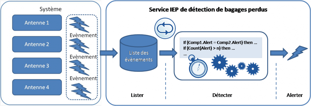 Intéressons-nous maintenant au vrai sujet de cet article : le service se basant sur la brique IEP et détectant les bagages perdus. Notre service doit donc effectuer 3 actions :