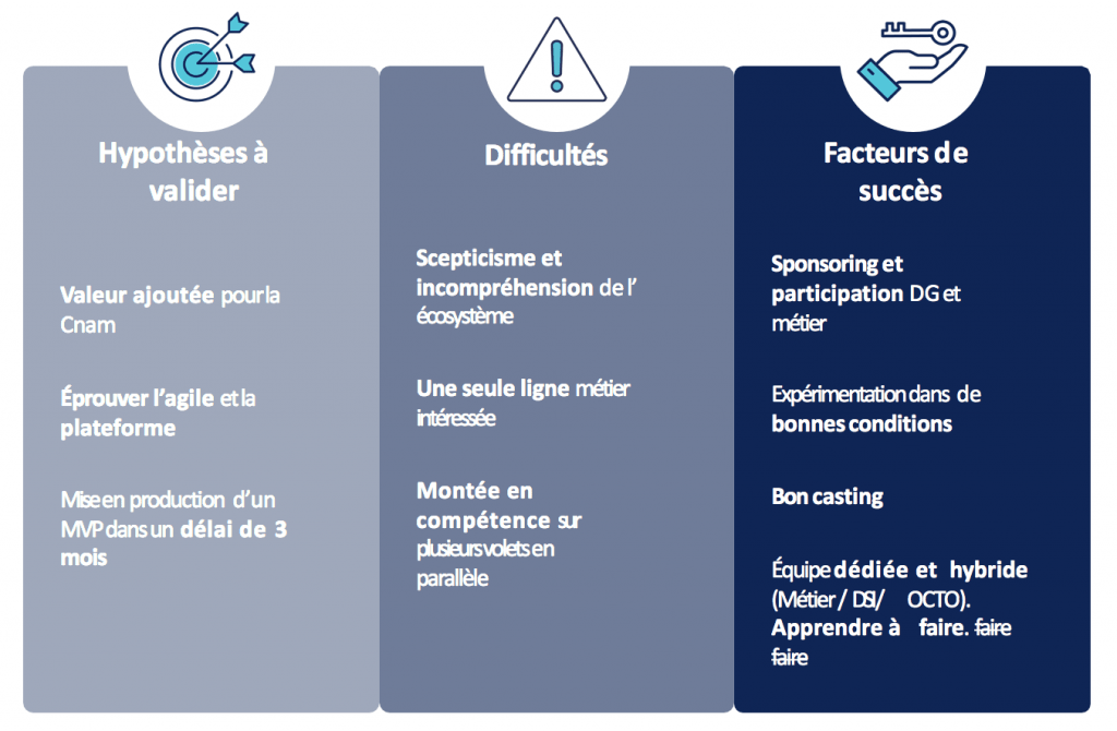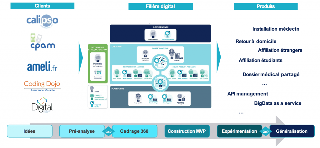 Au moment de la création de la “Filière Digital”, nous n’aurions pas pu imaginer les difficultés et les succès que nous avons rencontrés. La réussite de son introduction dans l'écosystème de l'Assurance Maladie a été rendue possible grâce à une démarche itérative et incrémentale d'Expérimentation -> Construction -> Consolidation et expansion.