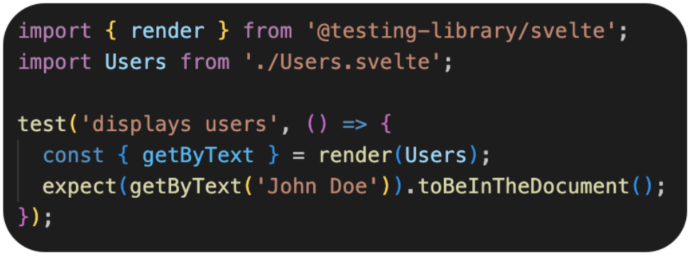 | Svelte | Vitest + @testing-library/svelte + Playwright / Cypress | Facile | Tests très proches de l’utilisateur final, mais peu de ‘unit tests” traditionnels |