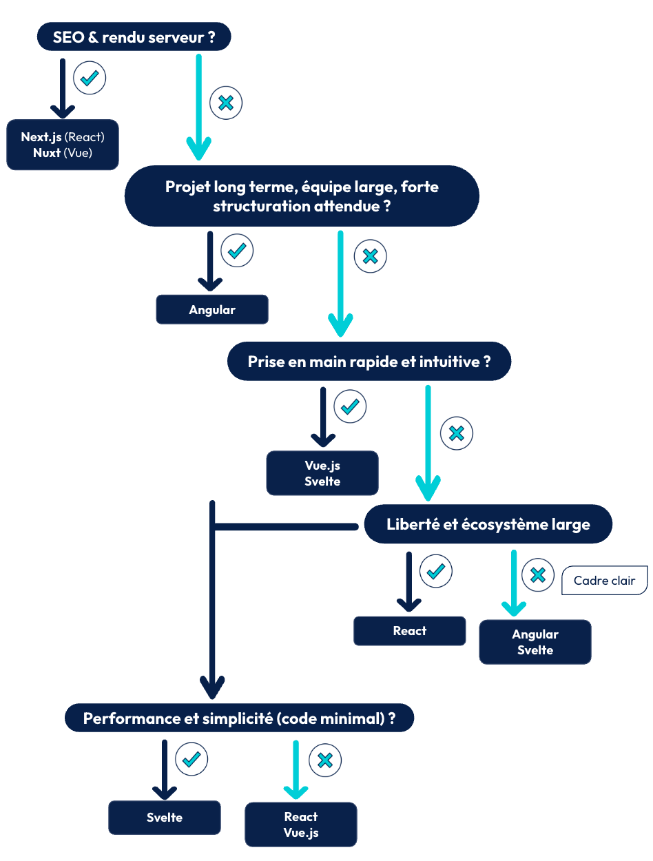 Il n’est donc pas question de choisir “le meilleur” framework, mais plutôt le mieux adapté à un contexte donné.
