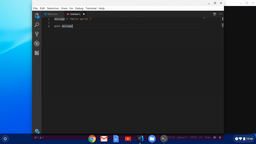 Une fois terminé, Chrome OS ouvre automatiquement une application fraîchement installée : le terminal !