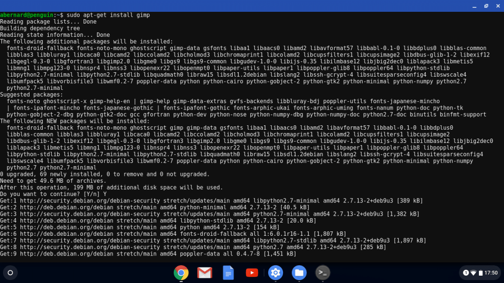Essayons d’installer le célèbre logiciel Gimp via apt-get :