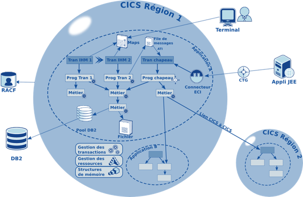 On pourrait représenter une configuration CICS typique de la manière suivante :