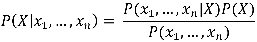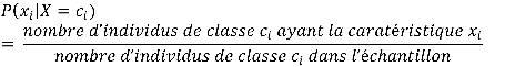 - Membre de gauche : la probabilité qu’un individu appartienne à une classe donnée sachant qu’il possède les caractéristiques x1,…,xn est égal à