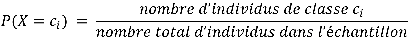 Si X peut prendre les valeurs c1,…,ck (k classes distinctes), alors le modèle ainsi obtenu dépend des paramètres suivants :