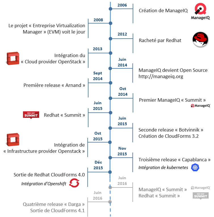 Début Juin aura lieu le ManageIQ Design Summit 2016 suivi par le Redhat Summit 2016 qui présenteront les nouveautés respectives de ManageIQ Darga et CloudForms 4.1, ainsi qu’une Roadmap prévisionnelle des futures implémentations.