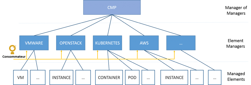 2 - Le second, la DSI laisse la main au projet dans l’utilisation des différents “providers” proposés (En imaginant qu’en tant que DSI je fournisses un “Compte” Amazon et/ou Openstack par exemple). Dans ce cas le CMP doit servir à vérifier et borner les utilisations.