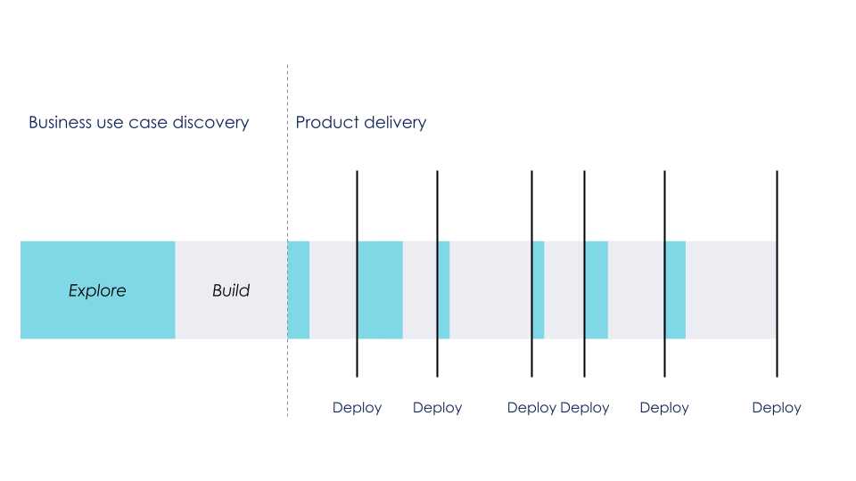 Le delivery commence par une phase exploratoire pour cadrer le cas d’usage. Le but de cette phase est de s’approprier les données, de valider la faisabilité et de déterminer des pistes d’implémentation. Ensuite, on enchaînera avec des phases d’expérimentations tout au long du delivery, à chaque fois que le développement de nouvelles fonctionnalités nécessite de creuser des sujets de ML.