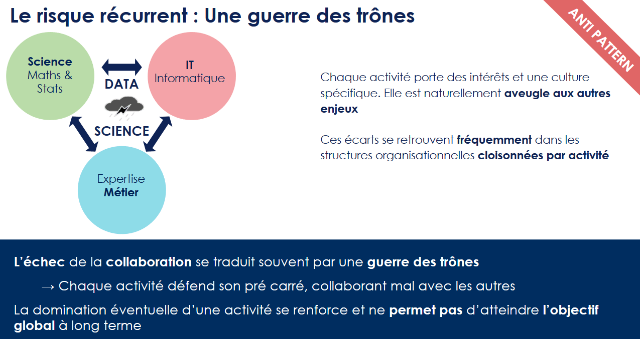 Le premier piège à éviter est le silotage. Chaque partie du projet (data scientists, métier et IT) a des intérêts spécifiques.