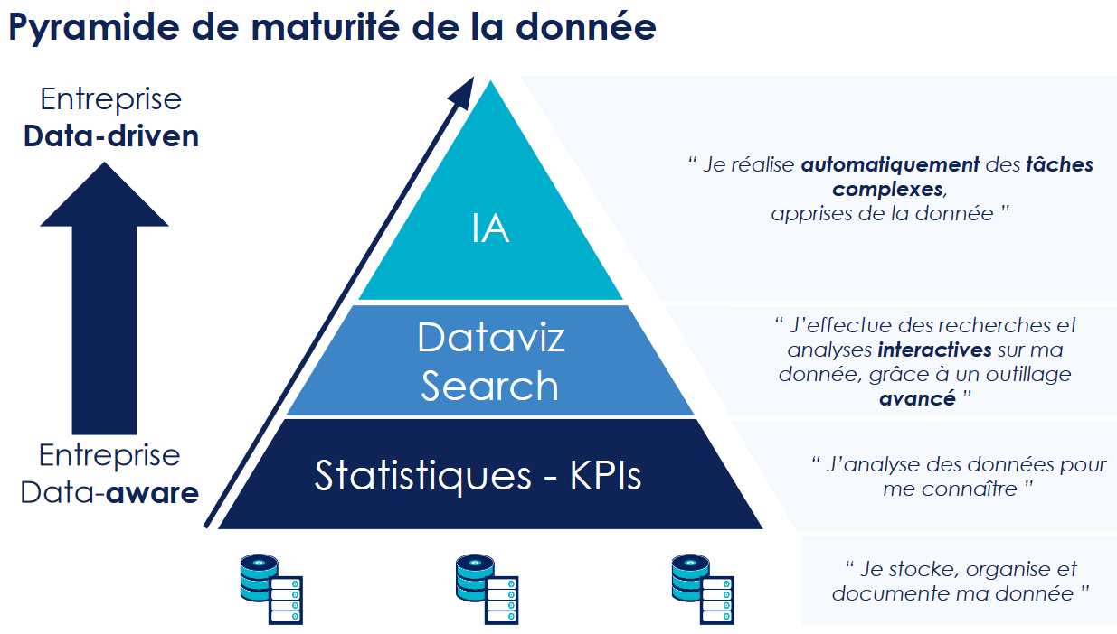 Une entreprise idéale verrait ses applications d'IA accomplir en continu des tâches à forte valeur ajoutée métier. La donnée étant la fondation de l'IA, cela la suppose fiable, un minimum mature et permettant une parfaite description de l'entreprise.