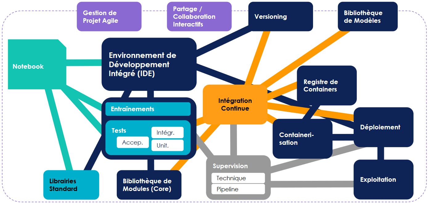 Le choix et l’utilisation d’outils adaptés est un élément crucial car l’écosystème d’outillage d’une industrialisation efficace peut très vite devenir complexe, comme l’illustre la figure ci-dessous :