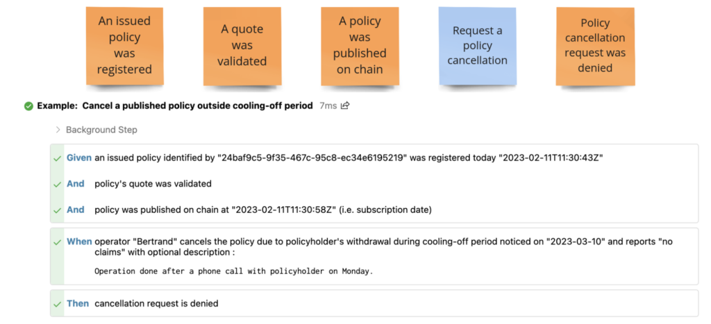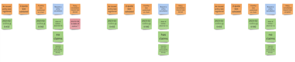 Ce changement de cap amène de nouveaux enjeux notamment sur la gestion des événements et du modèle de données. La méthodologie DDD a aidé l’équipe à avancer dans ce contexte où l’innovation et les incertitudes sur l’adaptation du métier de l’assurance dans la blockchain sont fortes.