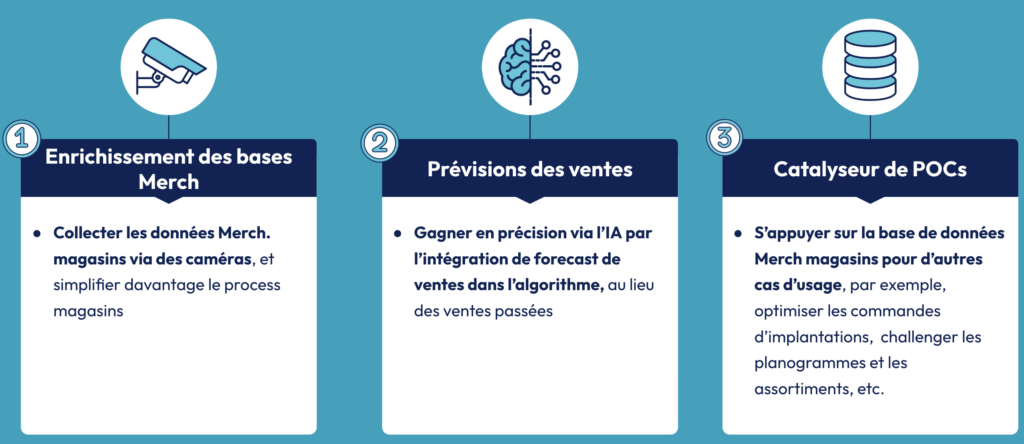 Enfin, la base de données Merchandising à disposition et le cockpit de KPIs personnalisables vont permettre de créer de nouveaux cas d’usage, pour challenger les assortiments, les planogrammes, les volumes d’implantation et optimiser davantage le niveau de stocks magasins.