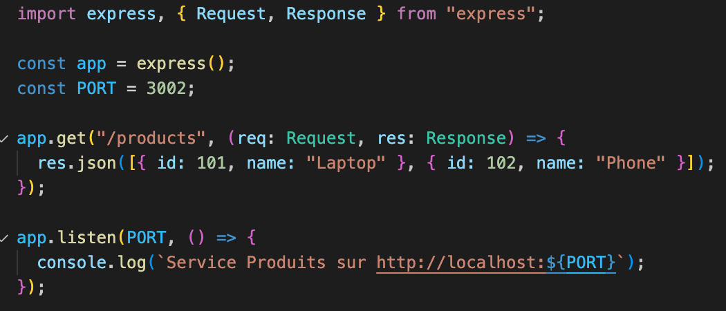 - Redirection des requêtes : L’API Gateway agit comme un proxy, redirigeant /users vers http://localhost:3001 et /products vers http://localhost:3002.