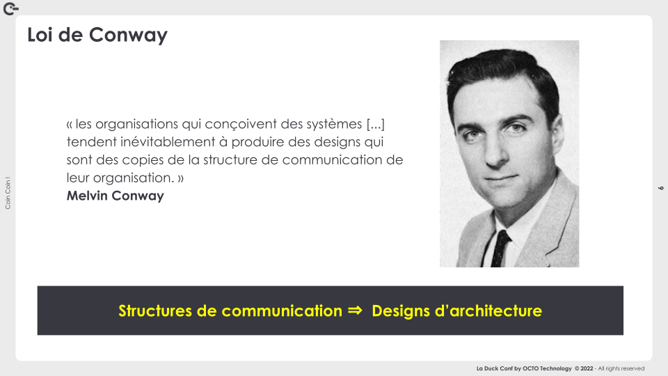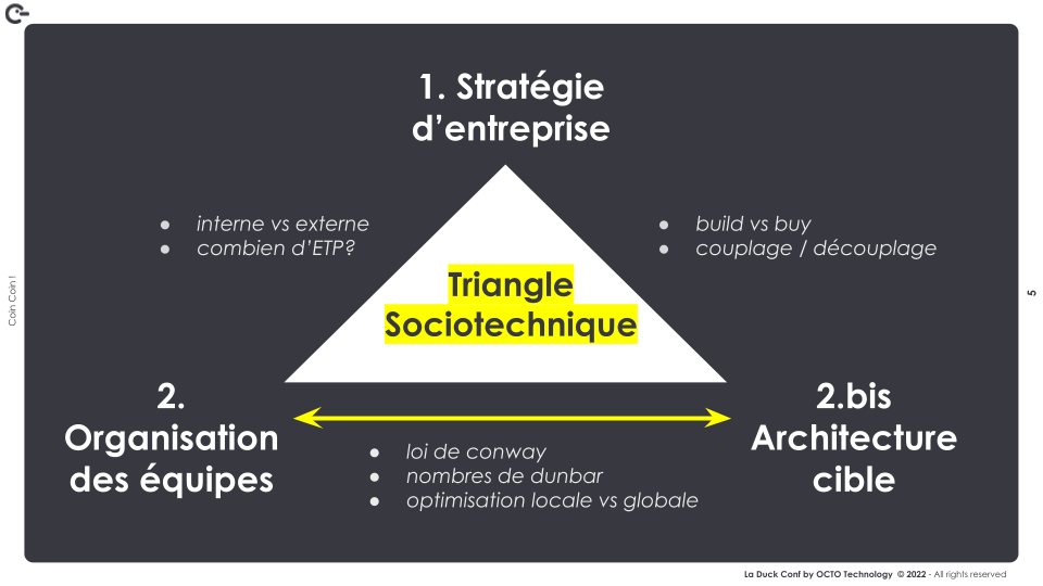 - La loi de Conway : détourer des structures d’équipes qui se calquent sur l’architecture cible du système d’information.