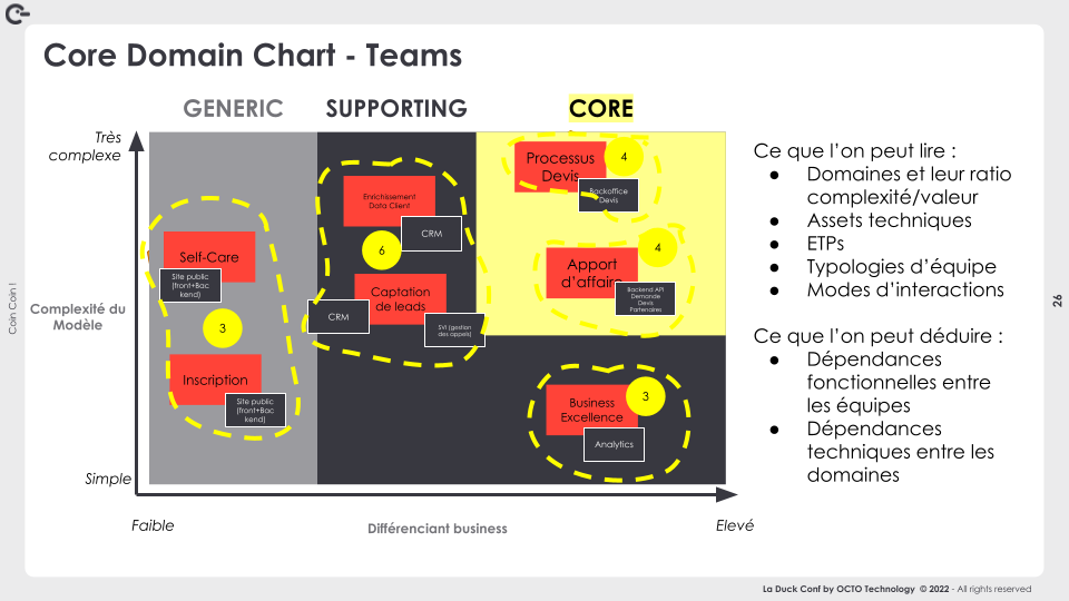 - Que signifie le fait qu’une équipe ait en responsabilité des domaines “éloignés” sur le Core Domain Chart ? Quels sont les impacts ? Est-ce souhaitable ?