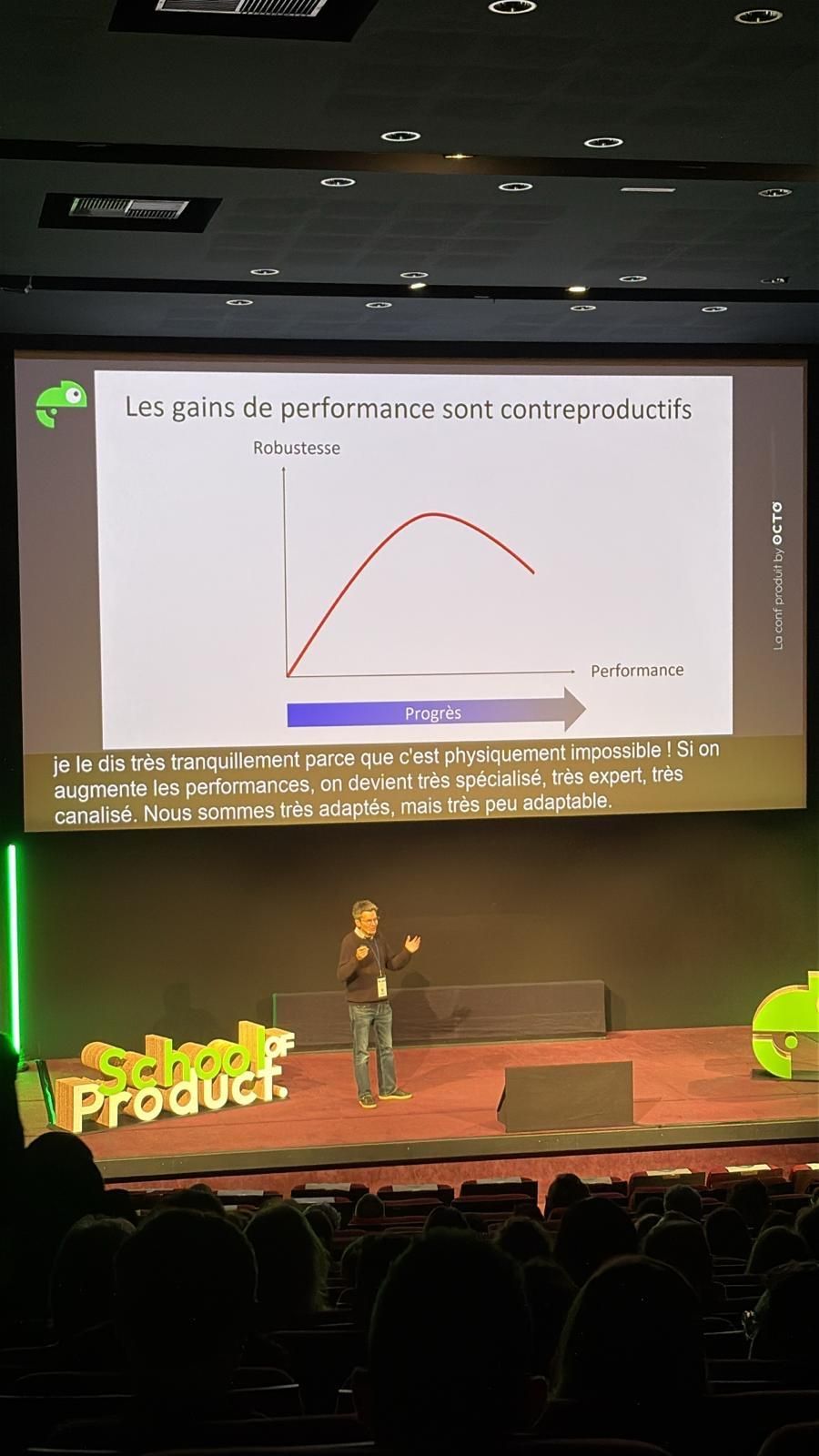 Olivier Hamant, biologiste et directeur de l’institut Michel Serres, a proposé une éloge de la robustesse lors de son talk d’ouverture à la SOPO 2025, une prise de position plébiscitée par le public. Pour lui, la robustesse est l’élément-clé pour s’adapter au monde de fluctuations dans lequel nous sommes entrés depuis le début du 21e siècle. Cette période est et sera marquée par un burn-out planétaire et humain pour encore les 2 à 3 prochains siècles. Le monde stable que l’humanité a toujours connu et sur lequel elle s’est bâtie, techniquement et culturellement, n'est plus. Ce nouveau monde de fluctuations doit nous obliger à repenser la performance.